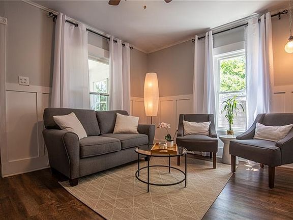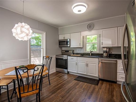This fully renovated Craftsman is waiting for you, nestled up to a wooded lot on a quiet street. New roof, gutters, siding, keyless entry front door, windows, electric, plumbing, vinyl plank flooring (main) and carpet 2nd floor, granite counter counters, cabinetry, & Stainless Appliances. Main level boasts a laundry area off kitchen adjoining the walk in pantry & coat closet. The master has 2 closets & full bath has linen closet, 3' vanity and ceramic tile floor and Dreamscape Shower Doors of heavy anti fog glass on semi-frameless steel rail & rollers. Laundry chute in Bathroom linen closet. There is a screened in front porch & rear deck has BBQ grill over looking the fire pit which is a park like atmosphere This home is turnkey and comes furnished. Electric Fireplace & 49" TV included along with touch lamps (w/usb ports), puzzle lamp, drapes, etc