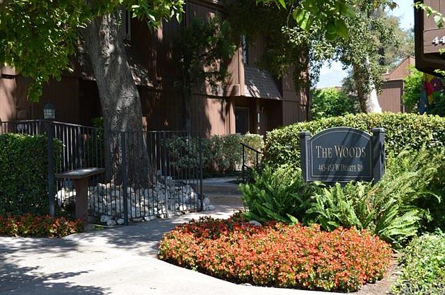 Enjoy stunning views of the beautiful association swimming pool and courtyard area from almost every room of this home! The entire unit has been freshly painted and is move-in ready. Enter into a very spacious living room featuring beamed ceiling and fireplace. The kitchen with new tile flooring opens to the dining room, which could also be used as a family room. A sliding glass door in the dining/family room allows ample light and provides access to the patio. Additional downstairs light from oversized windows in living room. Downstairs you will also find a guest bath and laundry area. Upstairs you will find the master suite and two additional bedrooms. The master bedroom offers vaulted ceilings, laminate flooring, and amazing pool, treetop, and mountain views! The master bath has a beautifully tiled shower with new enclosure. This unit has a prime location near the complex entrance, allowing guests the convenience of street parking. Arcadia Woods, a lush, meticulously maintained complex, is close to all that Arcadia offers - restaurants, shopping, medical facilities, transportation, and entertainment Award-winning Arcadia School District