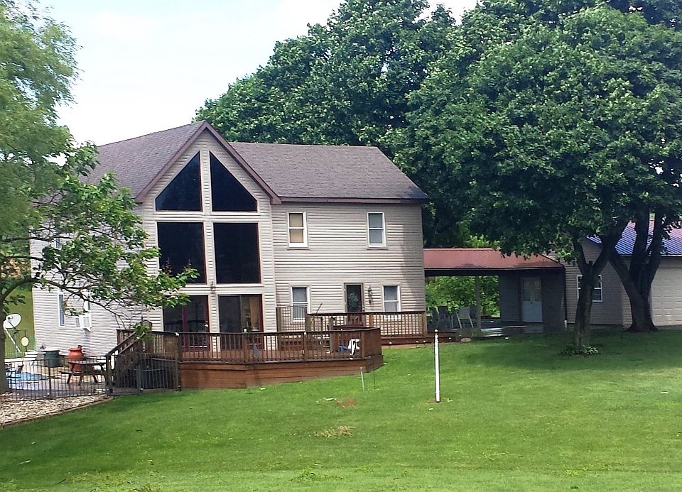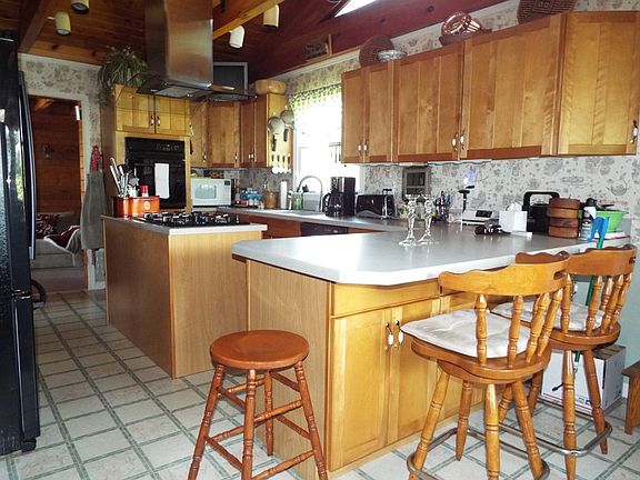 Beautiful remodeled home on 2.6ac corner lot in a gorgeous country setting! Everything you could ask for and more! Great room featuring pine vaulted ceilings and walls, Ceiling fan, brick fireplace with pellet insert, and double glass doors opening onto a wood deck with security fence. Large eat-in kitchen with beamed ceilings,island gas cook top, wall oven, 2 refrigerators, breakfast nook with propane fireplace. Entry foyer, main floor laundry with full bath, 5th bedroom on main floor with office area. Main bedroom on upper floor has a 5x14 walk-in closet, ceiling fan & a 4x14 railed loft overlooking the great room. Three additional bedrooms and bath on upper floor. 200amp elec.service. Outside amenities include a covered concrete patio, open patio area, wood deck with fence, 30x40 garage, in-ground pool with patio area and pond. Macadam driveway and lovely landscaping. Come enjoy target shooting or fish to your hearts content. Pre-approval requested by seller.