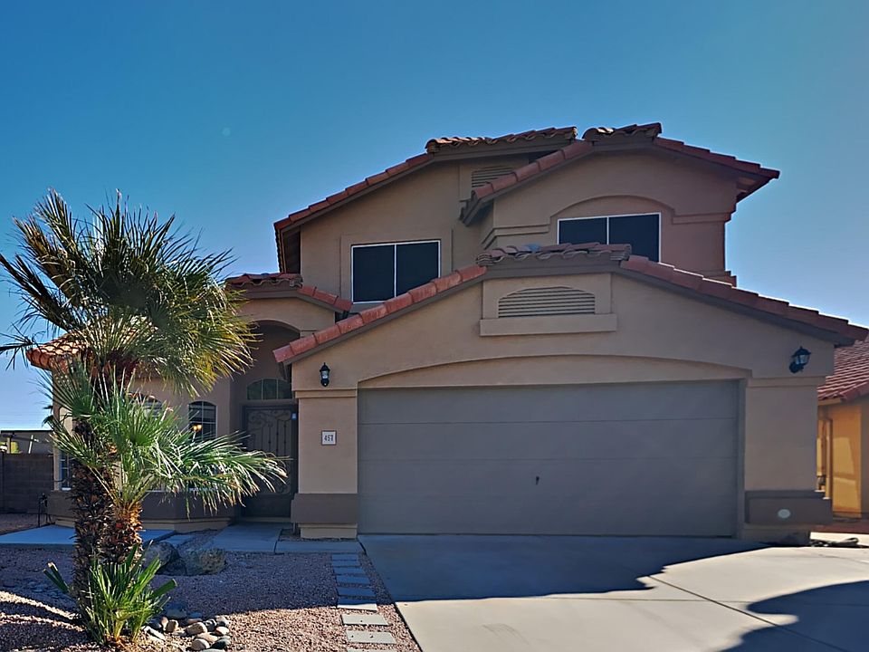 Lovely 2-story, 4 bedroom, 2.5 bath home with so much to offer. Formal living/dining room, open concept family room, and kitchen with a double glass door pantry. Beautiful quartz counters with a pub height breakfast bar. Ceramic tile planks on the main level for easy cleaning. Upstairs is fully carpeted with all 4 bedrooms, the primary suite boasts a large walk-in closet, soaking tub and separate shower. In the quaint backyard you'll find a covered patio, fire pit, and a bonus shed, complete with plank flooring and a wall AC unit, great for a ''she shed'' or workshop. Half bath and laundry on the main level. New Lots of storage in the garage. Tour this home before it's gone!