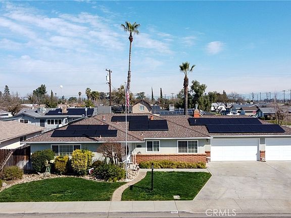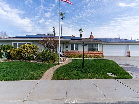 Seller will PAY OFF solar with a full priced offer! What more could you want! Beautiful updates throughout this entire 1,630 square foot home! 4 generous bedrooms and 2 bathrooms situated on a large corner lot. The primary has double closets, dual sinks, and tile shower. Guest bathroom offers dual sinks and beautiful tile shower tub combo. Kitchen boasts granite counter tops, stainless steel appliances, and polished cement flooring. The kitchen opens up to the great room that features built in shelves and mantel that surround the fireplace insert. Backyard offers plenty of space for entertainging along with an inground pool & slide! Top it all off with solar, four car garage, additional fenced storage, and room for RV parking!