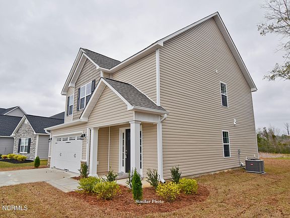 Welcome to the highly desired & popular community of Onslow Bay. Brand new construction built by Onslow County's most trusted & preferred builder, featured in Builder 100/ Top 200 Builders in the country. Onslow Bay is a hot spot, 3 miles to MCB Camp Lejeune's Piney Green gate, 14 miles to New River Air Station & minutes to area schools, shopping & dining. This beautiful neighborhood is sure to impress, complete with a clubhouse area & community pool. The Susie floor plan with 3 bedrooms and 2.5 bathrooms approximately 1763 heated square feet. Charming exterior with easy to maintain vinyl siding, accented with either stone or brick and classic landscape. Covered front porch is just the start to this adorable home. Open living spaces are perfect for entertaining guests and spending quality time with family. The 12' x 15' family room is accented by ceiling fan and electric fireplace flowing into the 10' x 11' dining room. The spacious kitchen keeps the chef of the family close with an open design. Kitchen is complete with Flat panel, staggered cabinets and stainless steel appliances, to include microwave hood, smooth top range and dishwasher, granite counter tops and space for bar stools. Full sized pantry for extra storage. Laundry room, powder room and coat closet complete the first floor. The 19' x 13' master suite features a ceiling fan and uniquely designed, double walk in closet. The master bathroom has double vanity topped with cultured marble counters, ceramic tile flooring, separate shower and soaking tub. All bedrooms are located on the second floor along with a full guest bathroom and linen closet. Enjoy those Carolina evenings on the back patio. 2 car garage. Backed by one-year builder warranty from top, local builder. Call today! NOTE: Floor plan renderings are similar and solely representational. Measurements, elevations, and specs may vary in final construction. All selections have been ordered, limited selections for buyer to choose. Call L/A to verif
