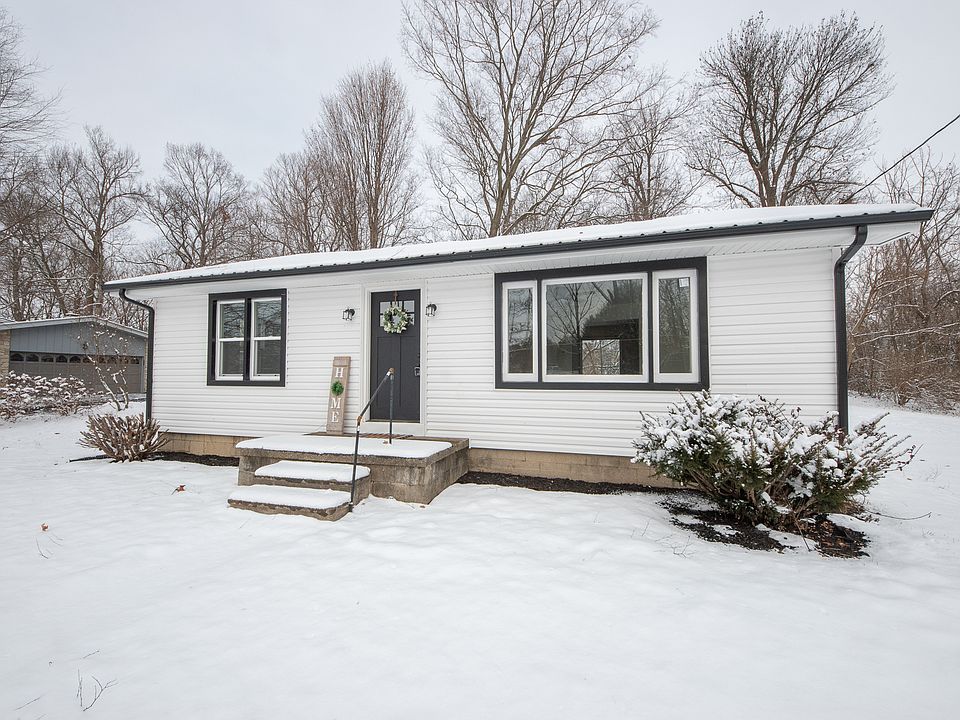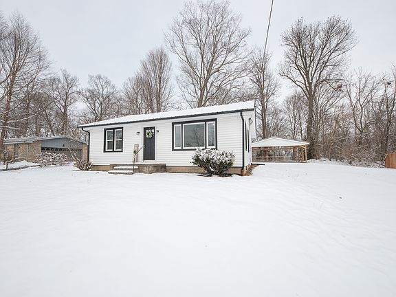 MOVE IN READY! You won't want to sleep on this property that has been renovated for you to call home. On just over a half acre, you are close to town but with a country feel. A backyard staircase will take your to your access of Clifty Creek where adventure is calling! The kitchen has white floor to ceiling cabinets, stainless steel appliances and a shiplap accent wall. Enjoy all of Indiana's seasons with the natural light that radiates into the living room and kitchen through the large windows. Spacious and bright bathroom. Both bedrooms have large closet space and newly carpeted flooring. You'll love the 2-car carport with the back patio overlooking Clifty Creek. Large unfinished basement. Immediate possession.