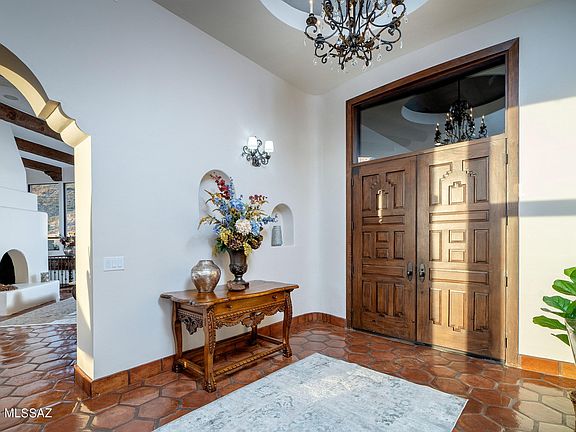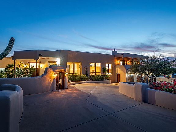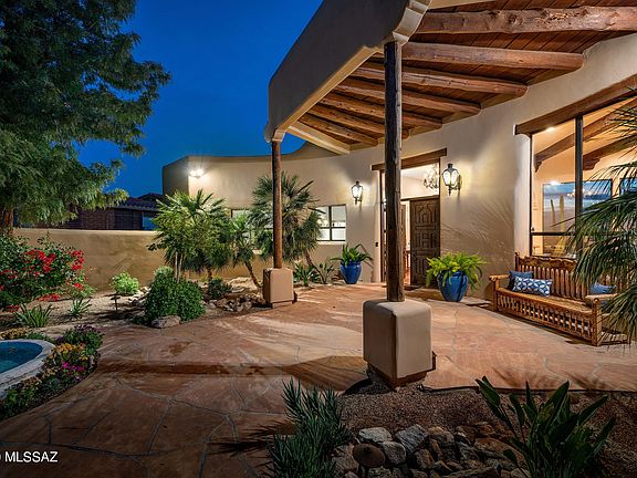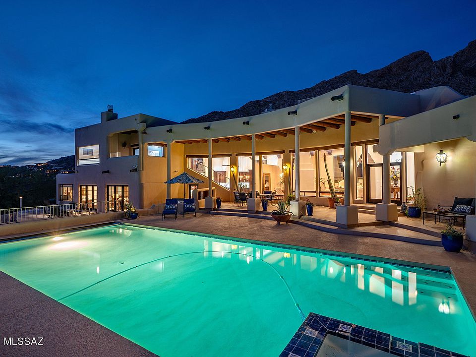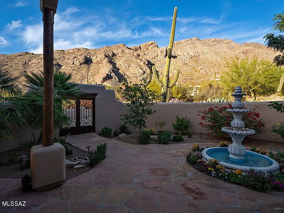 Enjoy some of the most dramatic Catalina Mountain and expansive city views stretching out over the valley below, from this privately situated residence. This thoughtfully crafted and timeless estate home, features classic detailing with a modern ease and intimate luxury. Upon arrival, an air of grandeur pervades this incomparable residence, privately located at the base of the Catalina Mountains and surrounded by sprawling mature desert landscape, adding to the feel of the sophisticated estate. Entering the home, you are greeted by a large foyer with soaring ceilings, acting as the central hall, establishing the main connection point of the home, which opens onto the formal living and dining rooms, with scaled picture windows strategically placed to enhance the many view corridors... Complementing this perfectly executed floor plan, are lofty ceilings and doors that open onto the tranquil grounds at every turn. The heart of the home is the fabulous reimagined chef's kitchen featuring top end fit and finish, which includes a large center-island, granite countertops, ample storage and a Pro Series Decor appliance package. The lower level family living room is designed to substantial scale and comfort, allowing versatility in its use to reflect the activities enjoyed by its owner and includes a hand crafted credenza with built in wine refrigeration, exuding elegance with carved wood cabinetry and granite countertops. Located on the upper level of the residence is the sumptuously appointed owners suite, with a custom walk-in dressing room, luxuriously finished spa-like bath, office/workout flex space, with a walk-out covered balcony, perfect for enjoying the breathtaking mountain views. The balance of three bedrooms are sequestered on the East wing of the residence, each with direct access to an adjoining bathroom, perfect for families and guests alike. An elongated veranda connects the shared living spaces, with a series of doors coordinated to tie the interior rooms to the spacious outdoor living environments, resulting in a juxtaposition of private and social spaces. Layers of elevated patios, with various native shrubs cause an explosion of color, light and shadow, creating a framework for the pool, acting as the centerpiece of the rear courtyard. Seamless indoor-outdoor entertaining while out on the sun-drenched South facing terrace, offers al fresco dining, with a dedicated built in barbecue station, a putting green with customized green speeds, breaks, fringe and rough, creating the ideal practice surface, with unobstructed Catalina Mountain and city views beyond.