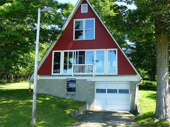 Classic A-frame overlooking Lake Moraine offers surprising space offering enclosed porch overlooking the water, living room w/fp; kitchen w/updated appliances; shower bath; Laundry area, 3 bedrooms, great closets and storage plus drive under garage /w utility space. Used most recently as a summer home, this sweet property is great for year round living too!