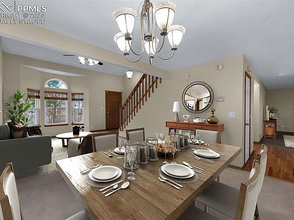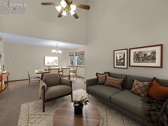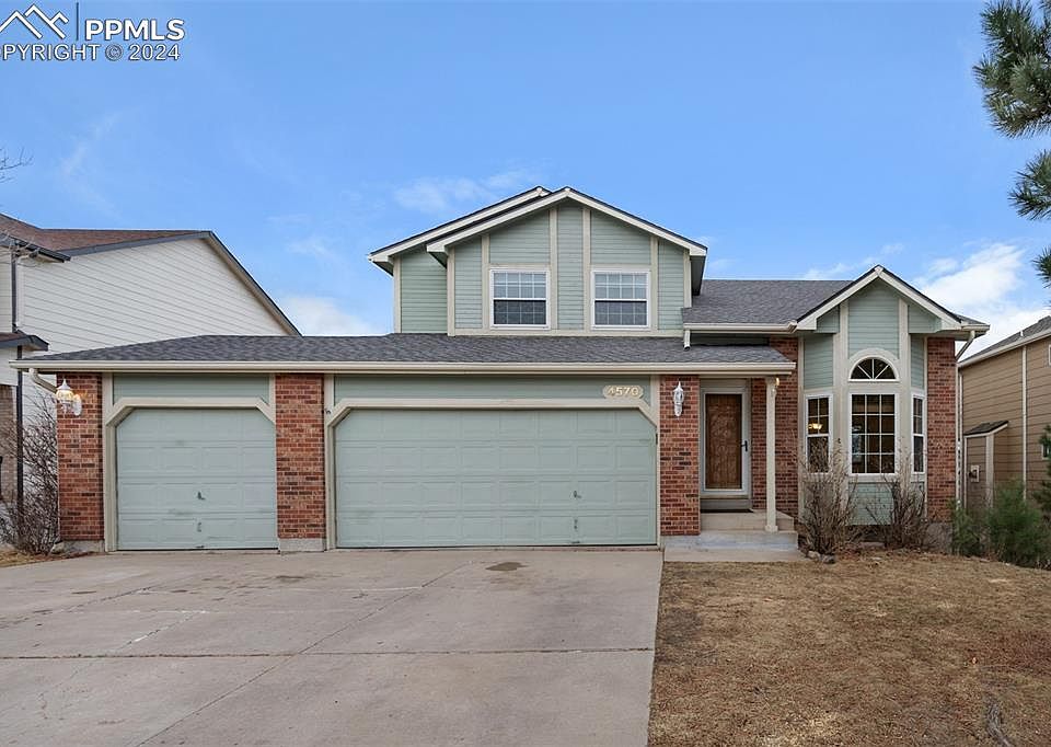 Nestled in the coveted Great Mountain Shadows locale, this home offers views of both the city and the mountains. Enjoy the tranquility of a serene and welcoming community, where traffic is minimal and nature beckons with nearby attractions like the Garden of the Gods and Shadow Mountain Open Space. Boasting abundant living spaces, this residence features a formal living room, cozy family room, and bonus rooms in the fully finished basement, perfect for versatile use. The open formal living and dining area, adorned with a charming bay window, perfect for entertaining. The eat-in kitchen is complete with ample countertops and a convenient built-in desk. Step out into the inviting sunroom, where panoramic views await through windows on three sides, along with a heater for year-round comfort. Upstairs, four generously-sized bedrooms offer retreats for all, including a primary suite with a walk-in closet and en-suite bath. Additional living space awaits in the basement's versatile family room, complemented by a cozy pellet stove, and a bonus room. An extra basement bedroom and nearby full bath add flexibility and convenience. With a three-car garage, a recently replaced roof, and newer appliances backed by warranties, this home is poised to provide comfort, convenience, and lasting memories for years to come.