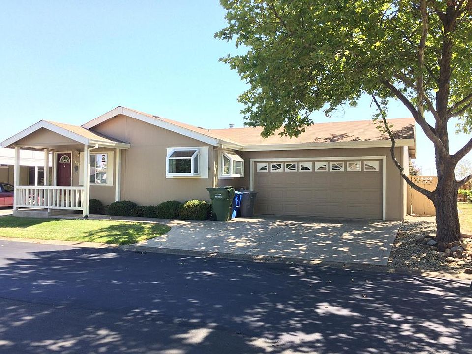 Highly sought after 2 CAR GARAGE! 2 Bedroom + OFFICE (could be 3rd bedroom) with French doors. Private fenced yard with garden shed and peaceful covered back patio. Open floor plan, Cathedral ceilings, Skylights, Ceiling fans, Plant Shelves, 2 Garden windows. Shows Beautiful! Available for a VERY quick escrow. Great location, close to shopping. Los Robles Adult Park, Pool & Clubhouse CB260