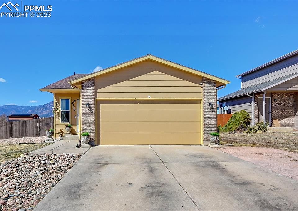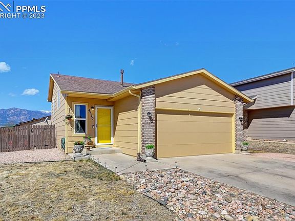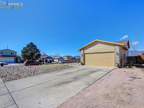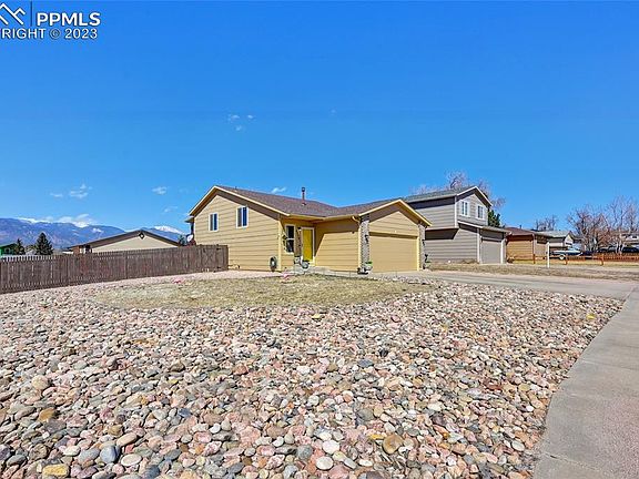 Lovingly cared for and updated 3 bedroom 2 full bathroom located on a large corner lot just minutes to Fort Carson and quick access to I-25. This home offers plenty of off-street parking to include a large gate for access to the backyard in addition to the 2 car attached garage. New roof, exterior paint, and garage door installed in 2018. Front yard and backyard irrigation installed in 2017 and maintained twice annually. ADT security system included. Central AC keeps you cool in summer months. Step inside and you will notice the beautiful ceramic tile entry and hardwood floors leading into the living room. The main living room is flooded in natural light, and the vaulted ceilings lend an open and airy feel. Most striking are the unobstructed views of the Front Range and Pikes Peak. The covered deck, patio, and fire pit allow you to fully enjoy the mountain views and outdoor living. The kitchen has been updated with new cabinets, granite countertops, ceramic tile, and stainless steel appliances. The primary suite is located on the main level with adjoining bathroom and walk-in closet. Downstairs is the garden level basement with large windows. The large family room has a gas fireplace. Two bedrooms and a full bathroom complete this level.