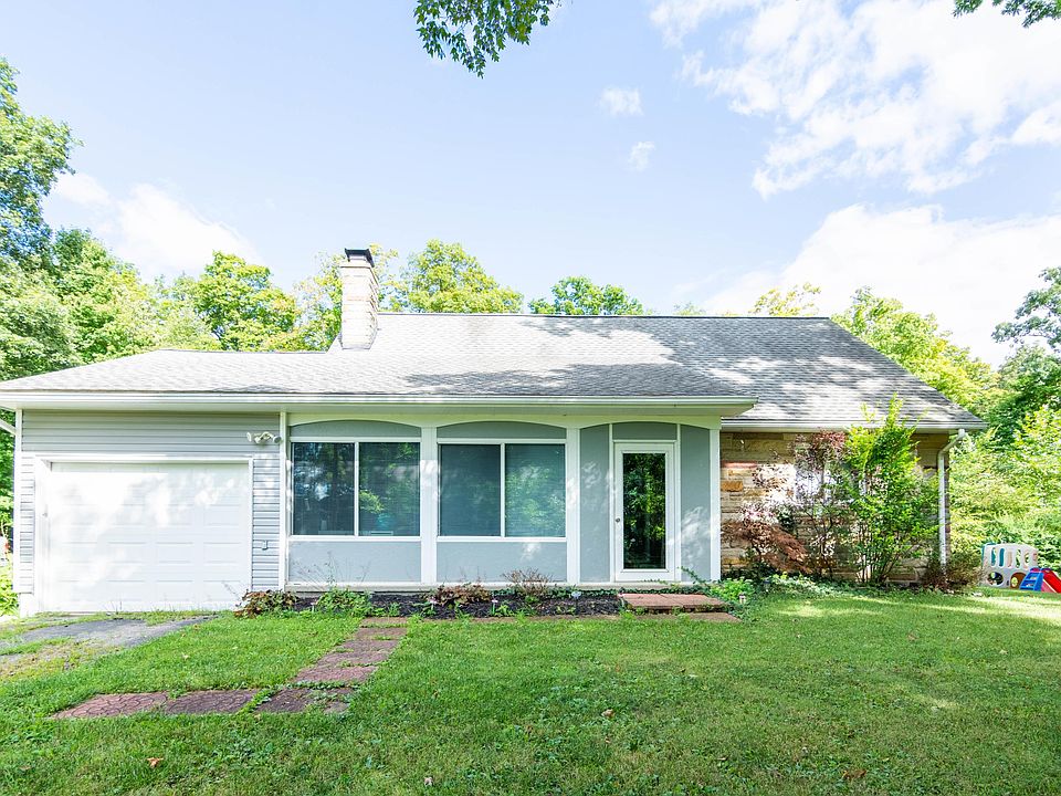 Outdoor lovers dream. 9 fenced wooded acres allow you to go fishing in the stocked pond from your own dock with additional patio area. Take a 4 wheeler or ATV through the cut trails throughout the woods, pick apples from the small orchard in the front lot, or work on projects or store your outdoor stuff in one of the 2 detached 2 car garages. The house has 4 bedrooms and 2 full baths with many updates throughout including remodeled bathrooms, new flooring throughout, freshly painted, new appliances in kitchen, geothermal furnace, and Kinectico water softening system and reverse osmosis water filtration system. There is an enclosed front porch that adds additional living space with heating and air ducts as well as a 3 season room on the back of the house with views of the pond.