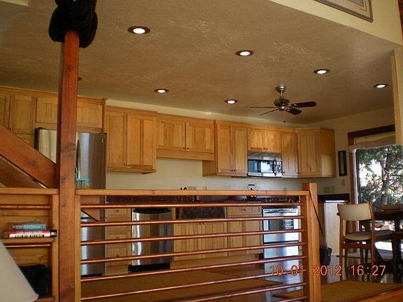 An amazingly beautiful piece of property. Forever views of the Rim and also lovely views of the town of Pine. Updated kitchen with granite countertops, copper farm sink, gas stove and newer stainless steel appliances. The two bathrooms are updated. Beautiful hardwood floors, vaulted ceilings, floor to ceiling windows; loft off the upstairs bedroom. Two bedrooms upstairs and the master bedroom is on the first floor as well as a bath. Lots of storage space throughout the house. Beautiful private decks for outdoor entertaining as well as star gazing. This property is move in ready; a must see for the discriminating buyer.