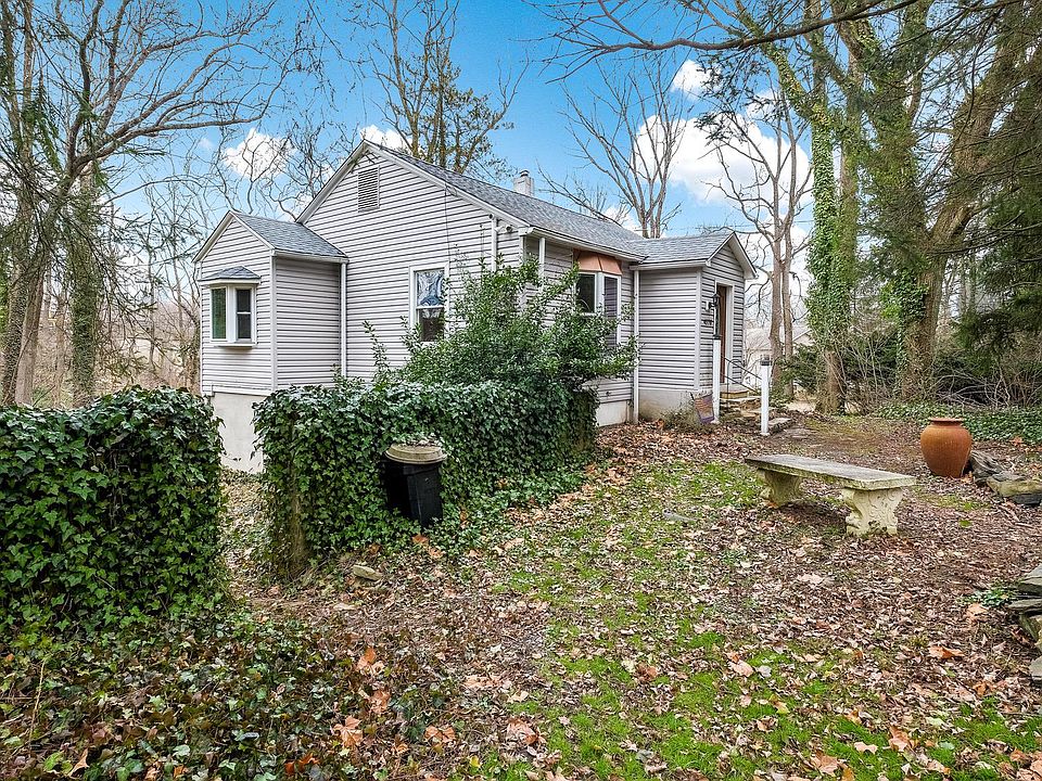 Well kept 2 bedroom, 2 bath Ranch located on a one+ acre wooded lot with water views. Features include foyer entrance with marble title floor, large living room w/ bay window and hardwood floors, eat-in kitchen with bay window, dishwasher, garbage disposal and microwave. Primary bedroom with bath, lighted walk in closet, spacious 2nd bedroom. 3rd room offers options for family room, sitting room, nursery or office. Semi-finished basement, laundry room, walk out to patio and yard. Other features include outdoor fireplace, basement garage and walk-up attic. Being sold as is with buyer to be responsible for any inspections and township U&O