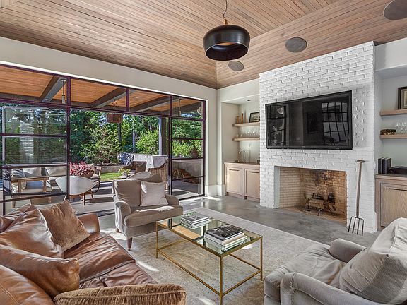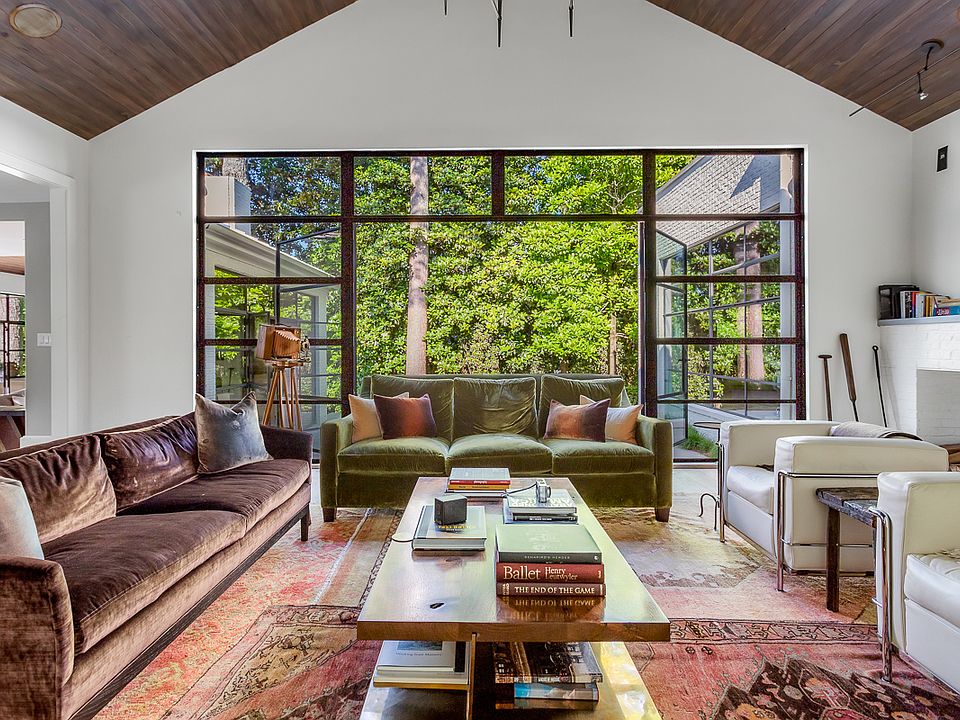 More photos, details, and floorplans at www.Buckhead.com/550 All you can say is “wow” when stepping inside this effortlessly cool custom home in Chastain Park. 4570 Powers Ferry is truly exceptional, embodying California-cool modern design paired with midcentury aesthetics and casual artistic flair. The whitewashed brick facade is accented by oversized metal windows and doors that open to the natural beauty of the property’s lush landscaping. From inside this beautiful home sight-lines extend in all directions bathing the spaces in natural light and bringing serene vistas into each room. Atlanta Magazine has featured this home, citing its sex appeal and “a sort of Rat Pack glamour.” Sleek spaces and clean lines offer a prime setting to showcase your art collection and fine furnishings. The well-known firm Siegel Construction and Design not only designed and built this home, they have continued to maintain it. The home cannot be seen from the street and offers total privacy on all sides, while still walkable to 300 acres of recreation at nearby Chastain Park.