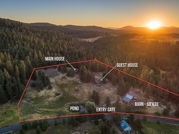 Multiple home country estate located in the heart of picturesque Cougar Gulch! This peaceful, 8+ acre retreat is less than 10 minutes from Coeur d'Alene, features both a main and guest home on the property, and could be subdivided to create up to four parcels! The main house is 2,900 sq ft, 4BR/2BA and features laminate wood floors, central A/C, and beautiful pine ceilings. The guest house is 1,020 sq ft, 2BR/1BA, and features radiant heated hardwood floors, gas fireplace, and a spacious covered patio. Property highlights include the ''storybook'' red barn, stunning views, year-round pond and a venue/event area complete with benches & tables. With such a close-in location, paved road access, and potential to subdivide the land, this property truly has limitless potential!