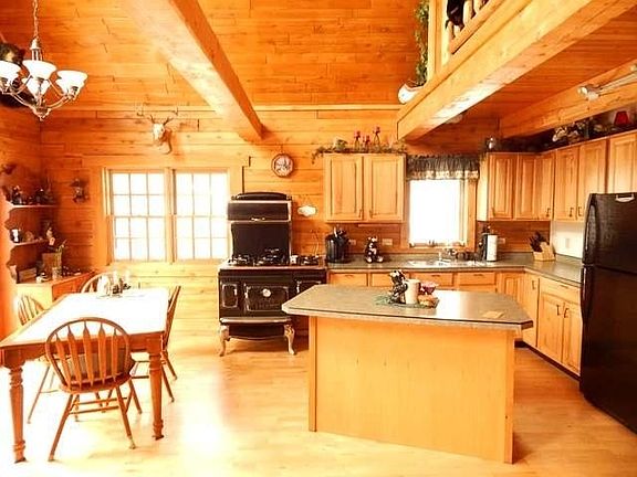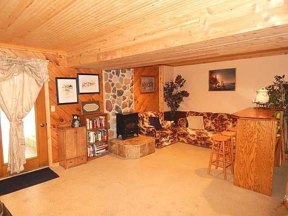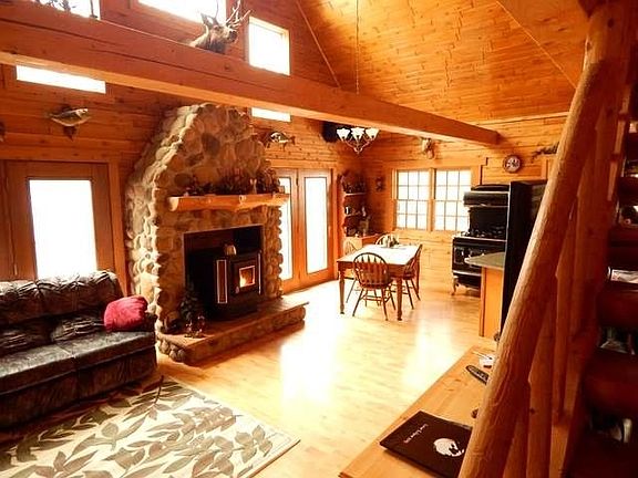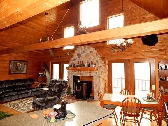 Take a look at this beautiful, full log year round home in a peaceful & private setting just minutes from town on a 62 acre fishing lake that locals say has a hard bottom. Inside, enjoy cathedral ceilings, open concept, master bedroom with gas fireplace, pellet stove, main level laundry, and lower level rec room with walkout. Kitchen offers a six burner gas range & electric oven. Outside, enjoy the entertaining patio, gardens, landscaping, asphalt driveway and 3 car garage.