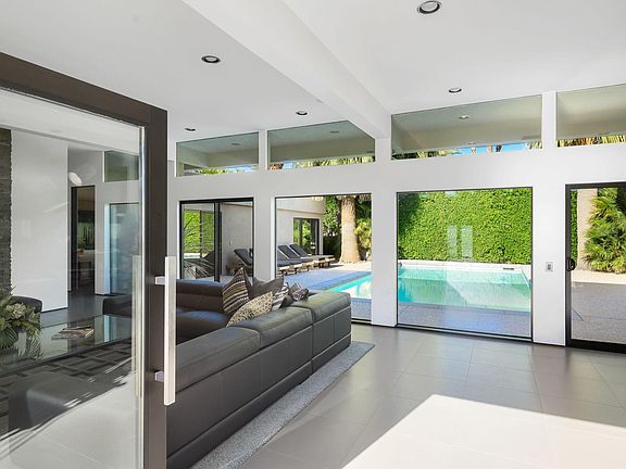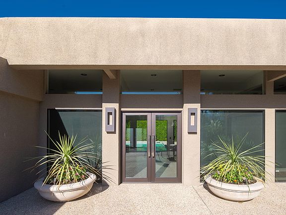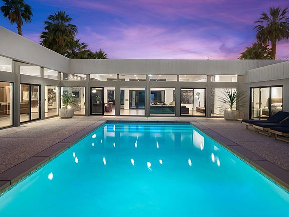 Bold lines and a chic interior accentuate the original design of this William Cody home. Renovated with unparalleled quality and attention to detail this one of a kind property is for the most discerning buyer. The entertainer's floor plan with a great room overlooking the center courtyard and pool offers seamless indoor/outdoor living. Informal dining space and an attractive two-sided fireplace set in a stacked stone wall round out the great room space. The formal dining room with a view to the mountains is off of the kitchen and opens to an expansive patio with a custom designed fire pit and seating. The kitchen, with a complete suite of Miele appliances, custom imported cabinetry and fireplace also overlooks the pool and courtyard. A top of the line kitchen is just off the pool area with ample seating for guests. Overlooking the pool, the master suite offers a tranquil escape with a luxurious master bath with a steam shower and an adjoining exercise room or office. Two spacious guest rooms, one with an ensuite bath, round out the home. Aesthetically and purposefully designed, this is a timeless renovation of a classic Indian Wells home.
