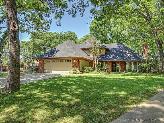 Jenks SE schools in Barrington Place. Mature trees, acre m/l lot with inground heated pool, diving board & hot tub. Master could be up or down. Spacious kitchen has Viking gas cooktop & vent hood, separate Sonic ice maker, stainless steel appliances, pantry and granite countertops. House features new roof May 2021, mostly hardwood floors, plantation shutters, tankless hot water heater, game room over the garage, and a shop with electric.