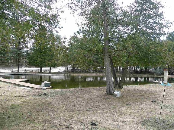 Here is a unique "up north" setting for you and yours! The home offers 3 bedrooms, 2 baths, main floor laundry and a 2 car garage with a workshop on 50 acres. The acreage offers 2 stocked trout ponds fed by natural stream. The house sits in view of one pond that has decking and areas set for fishing and playing. This pond is spring fed and provides a refreshing experience whether you swim or just dangle your feet. The seller states there is timber value further back on the property. The unique floor plan of the home would work well for multiple owners/investors. There are two "wings" that provide private sleeping and bath areas. The common areas of the dining, kitchen and living rooms provide ample space for larger groups. Whether you are looking for your 50 acre homestead or a "compound" to invest in, this home gives you great options.