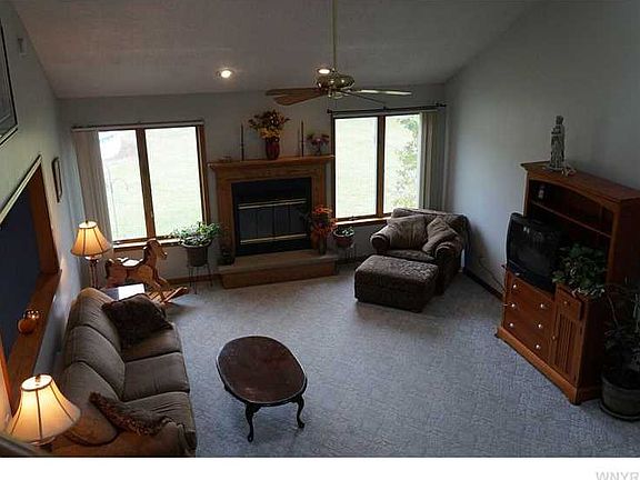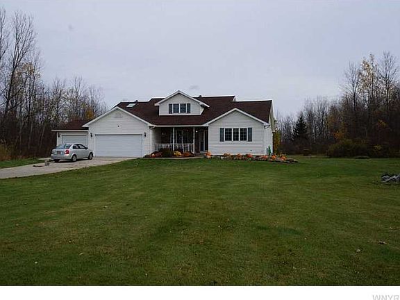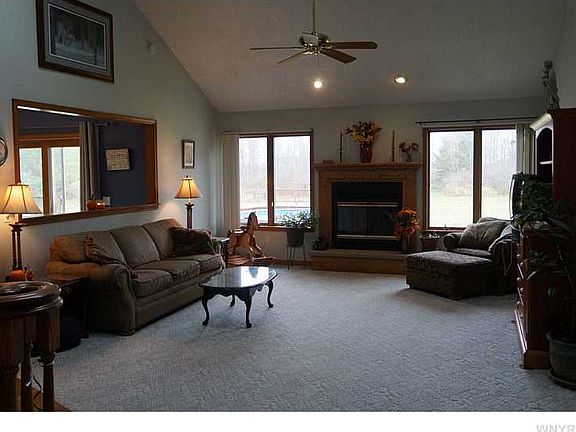 Welcome to your country home! 2 story Colonial lives like a Ranch, on 5 acres, no rear neighbors. 2 story great room, soaring ceilings, skylights, WBFP, room for 16' Christmas tree! First floor master suite, bath with jetted tub. Basement access to 3 car garage. Tear off roof in 2013. Expansion possiblilites over garage, or added storage. Country kitchen with sliders to stamped patio and pool. First floor laundry /mud room. Apples, strawberries, kiwi plants!
