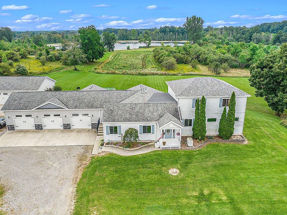 The expansive granite kitchen is a sight to behold, offering copious amounts of counter space and cabinetry that are sure to capture your heart instantly. The attached 3-car garage includes a drive-through door leading to a sizable cement patio, bordered by Trex decking around a pool. Additional parking and storage are provided by a detached 3-car garage equipped with openers, and one bay even features heating and air conditioning. A substantial 50x40 pole barn, complete with two sliders and a motorhome door, comes with electricity for added utility.