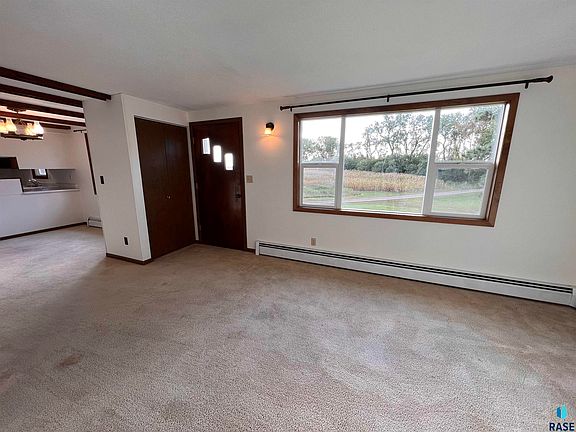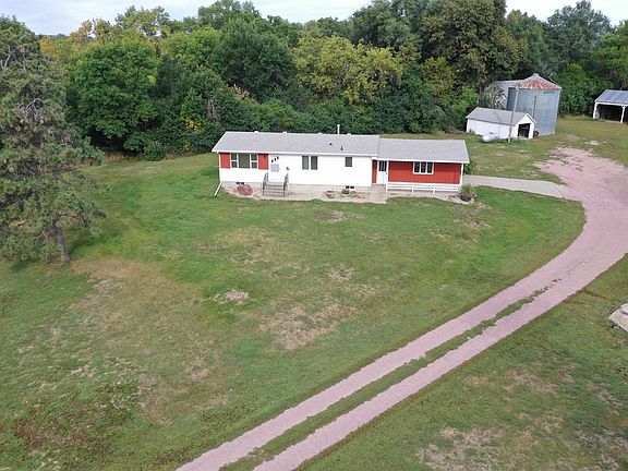 Cozy ranch home off an oil road located a short stretch from Madison or Sioux Falls! Come see this two bedroom, two bathroom, two garage stall home with plenty of elbow room on 11.93 +/- acres. This property has potential for hobby enthusiasts with several acres with a 30 X 20 storage building, 28 X 47 hay lean-to building, 16 x 40 additional lean-to and several grain bins! Step into this private setting surrounded by mature tree groves for the ultimate escape!