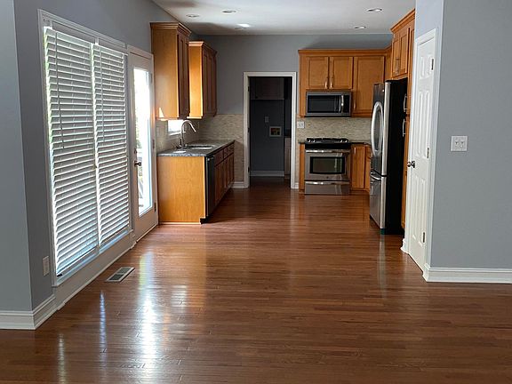Freshly painted 4 bedroom, 2 1/2 bath, 2 story brick home with a full unfinished basement. Kitchen has stainless steel appliances & granite countertops & tile backsplash. Laundry room has a sink, cabinets & granite countertop. Master bedroom on the main has a double trey ceiling & master bath has a jetted tub, separate shower, double vanity & separate toilet area with a door. Master bedroom has a large walk-in closet. Family room has a gas light fireplace & cathedral ceiling. There is a formal dining room. There is a pantry, coat closet & linen closet. Hardwood floors throughout except in the master & hall bathrooms which have tile & the stairwell has carpet. Window treatments are plantation blinds & faux blinds. Dual heating & air. 2 car garage with electric opener. There is a double deck & large patio area & a storage building in the fenced backyard. Lawn maintenance is provided. NO PETS ALLOWED. Resident responsible for all utilities. Lawn maintenance is included.