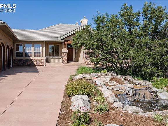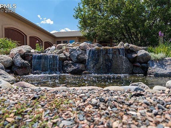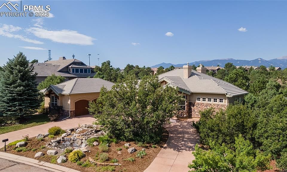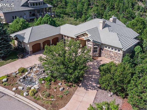 This custom luxury home combines urban convenience with a tranquil, natural setting in the sought-after University Park subdivision. Specially designed to accentuate breathtaking views of Pikes Peak and the Front Range, this home backs to open space and is your mountain retreat in the heart of Colorado Springs. Exceptional craftsmanship is apparent throughout, from the hardwood floors and custom cherry cabinets to the built-in shelves, vaulted ceilings, and high-quality finishes. The lot is just over 2/3 of an acre and backs to open space, providing added privacy and unobstructed views. The home features four spacious bedrooms, four bathrooms, and an oversized three-car garage boasting a circular driveway for easy access and additional parking. Enjoy the sounds of a water feature in the front yard as you approach the entry. The home's main living area is an open-concept great room and kitchen. A cozy gas fireplace, custom built-ins, and a whole-house sound system set the scene for endless entertainment or relaxation, all against striking Pikes Peak views. There is a large dining room for those formal occasions and a niche area in the kitchen with a view for those less traditional meals. Additional conveniences abound, including a central vacuum system, a new furnace, and central AC, radiant heat, and even a doggy door for your four-legged friends. A dedicated office space with an adjacent ¾ bath on the main level offers a serene environment perfect for work or study. The luxurious owner's retreat includes a spa-like five-piece bathroom and opens onto a large covered deck overlooking open green space and the mountains. The walkout basement extends your living space, featuring a family room perfect for movies or pool games, while a wet bar, three more large bedrooms, two full bathrooms, and abundant storage complete the lower level. You will love this home if you search for luxury, privacy, and modern amenities in one of Colorado Springs' premier neighborhoods.