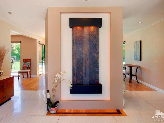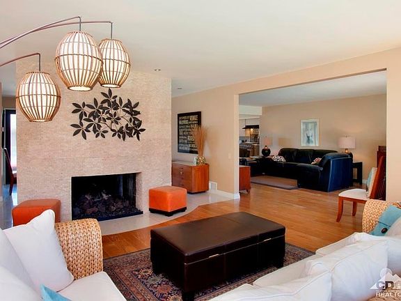 Mid-Century Modern masterpiece in Indian Wells! Incredible central and quiet location near Eldorado Country Club, with amazing views all around. Entertain inside in the gourmet kitchen and open living area, or outside on the expansive patios with built-in BBQ, bar area, and fire-pit. Rear yard is a private oasis, featuring a large pool with built-in seating area & umbrella all surrounded by lush landscaping on a sprawling 12,197 sqft lot. Home is 2,800 sqft and has been extensively upgraded, featuring 4 bedrooms, 3 bathrooms, gourmet kitchen with stainless steel appliances and spacious great room with formal dining & living areas. Master suite includes a built-in cedar sauna. Custom floors, modern glass doors, dual pane windows and sliders. Home comes fully furnished. No HOA dues. Indian Wells homeowners benefit from discounted rounds of golf at the two IW Golf Resort Courses and free fitness center membership. A great opportunity and must see!