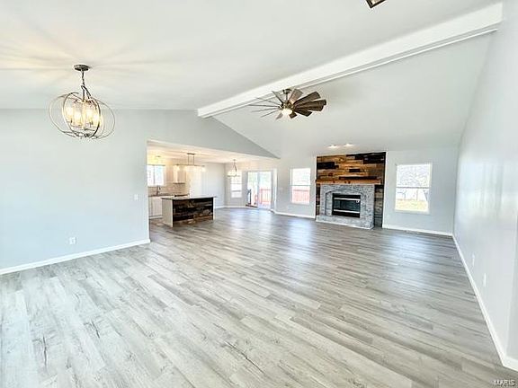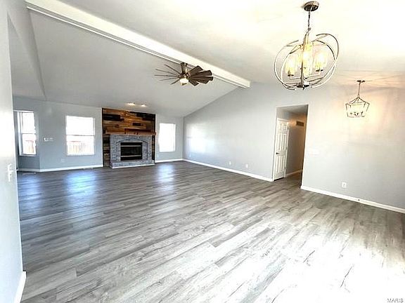 Welcome home to this charming and meticulously updated 3 bedroom, 2 bath sanctuary nestled in a wonderful St Charles neighborhood. As you step onto the covered porch, you're greeted by a sense of serenity that sets the tone for what lies beyond. Step inside to discover a spacious great room adorned with a warm woodburning fireplace, boasting a vaulted ceiling that invites natural light to dance through the numerous windows, creating a bright and airy ambiance. The heart of this home is its recently renovated kitchen, featuring sleek granite countertops and central island. Adjacent to the kitchen is a cozy breakfast area that overlooks the deck and rear yard, perfect for entertaining. Retreat to the newly carpeted master suite, where tranquility awaits. The completely remodeled luxurious ensuite bath boasts dual sinks, a separate shower and tub, and a generously sized walk-in closet. Two additional bedrooms, a full bath, and a mud/laundry room round out the living spaces of this home. Additional Rooms: Mud Room