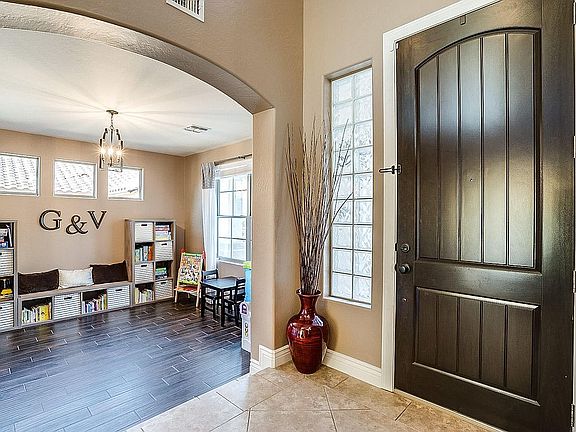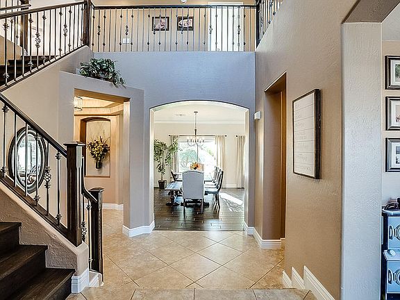 Grand foyer entrance welcomes you into this beautiful, move-in ready home in Power Ranch. 18'' tile and wood floors throughout all common areas of the home. Foyer splits off into the formal living and dining rooms complete with built in wet bar and fireplace. The eat-in kitchen features lots of natural light, beautiful mahogany cabinets, stainless steel appliances, and granite countertops. Downstairs you also have a half bath, laundry room with utility sink, and separate den. Up the curved staircase is the oversized loft with cabinet storage. Double doors open into the enormous master suite. Master bath has separate shower and tub and double sinks. Down the hall are 3 more bedrooms and another bathroom. Out back, a view fence, covered patio, and sprawling lawn provide peaceful relaxation.