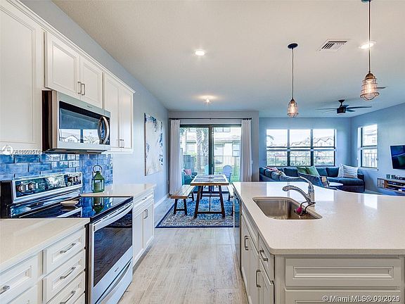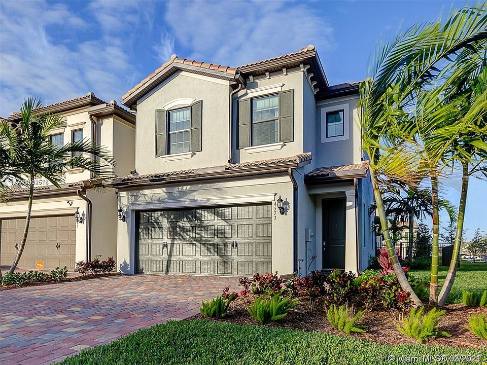 A MUST SEE! Located in the Beautiful Upscale Divosta Community.This highly upgraded 3bed-2.5bath townhome built on a premium corner lot that has an unusually large fenced in yard!Impact windows&doors.High ceilings Quartz kitchen countertops with pendant lighting&SS appliances,2car Epoxy garage.Nest therm.9"wood whitewash porcelain flooring dwnstr,upgraded tile&granite upstairs-Hunter Douglas blinds thruout,large built-out mstr closet with blackout blinds. Top loader W/D upstairs.Close to turnpk,Wellington Mall,Whole Foods and more.Tenant Occupied! Pls DO NOT DISTURB TENANTS! Closing not before June 1,2021 Highest & Best Offer! Showings Wed & Sat Only