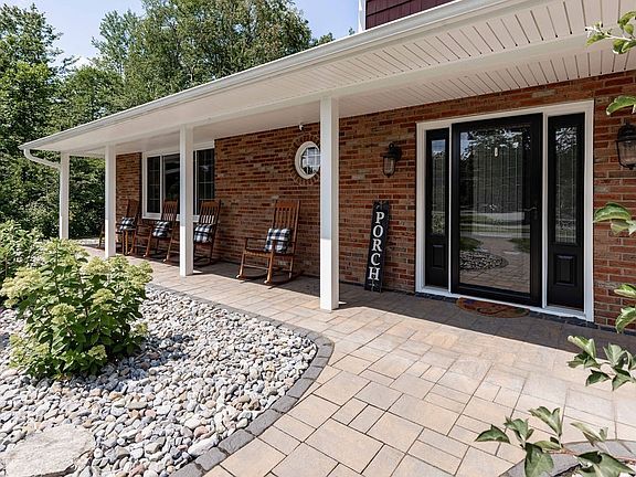 This sprawling 5 bdrm home sits on just under an acre & offers privacy w/mature trees. Just minutes from every desired amenity one can imagine! A half circle driveway makes a statement & is complimented by the full covered porch adorned by new vinyl siding, brick veneer, new windows, doors & garage doors! A slate tile floor welcomes you to the vast foyer. Open views of the side large living rm w/hdwds & cozy gas fp will draw you in to explore. Off of this space you will find a renovated mud rm w/ship lap, LVT flooring, & a remodeled powder rm. A 3 season rm overlooks a lush yard w/a wrap around deck, paver walkway to a screened gazebo & a private pool oasis! The rear yard offers a trail around the remaining property! Back inside enjoy views of the yard from the ktchn that is appointed w/white cabinetry, SS appliances, granite counters, & 2 pantries. An overzised great rm offers views of the front yard & into the dining rm which is ideal for entertaining! 4 large guest bdrms share a main bath & the owners suite includes a private bath. So many updates to enjoy, including conversion of baseboard heat to Gas Forced Air & Central Air. Lpool North Quadrant Schools & Truly Turn Key!