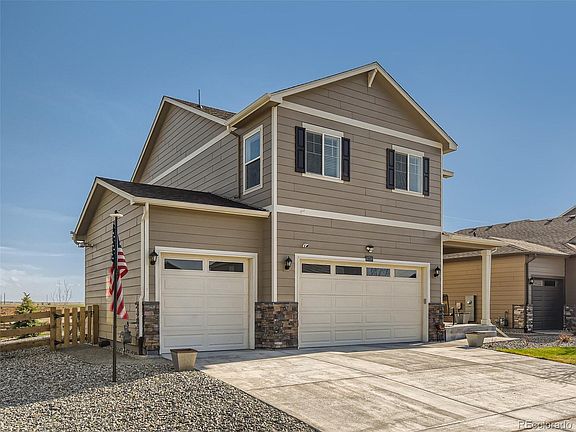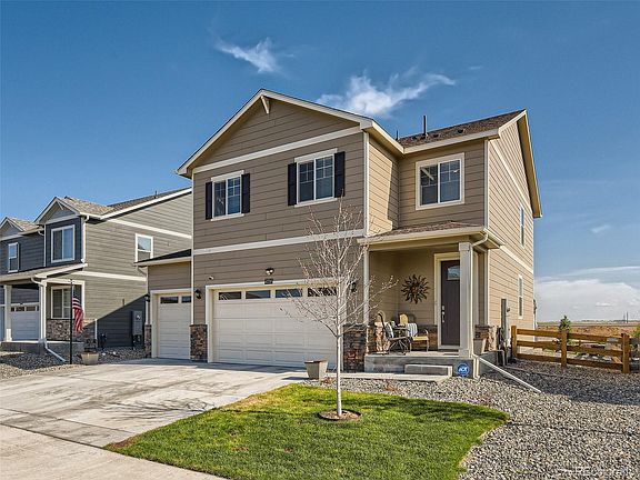 Welcome to this beautiful 2-story home with mountain views and 3-car garage in Bennett. Built in 2020 and meticulously maintained, you will enjoy the open floor plan featuring a large kitchen with upgraded lighting, island, granite counters and stainless steel-appliances. From the breakfast nook, enjoy the large patio that overlooks a manicured yard with fencing, an automatic sprinkler system and a drip system on all shrubs, trees, and ornamental grasses. Beyond that, you will find this home backs to open space! Perfect for quiet mornings or evening BBQs with friends. Upstairs you will find four good-sized bedrooms including a primary suite with a walk-in closet (with window) and 5-piece bath. For convenience, there is a laundry room on the upper floor. Other features include a full 4’ insulated crawlspace for storage, a natural gas garage heater and metal shelves in the garage that are staying with the home. Penrith Park is a newer community with easy access to the Recreation Center, shopping, restaurants, and Denver International Airport. Come be a part of this amazing community! Be sure to check out the video tour as well: https://www.virtuance.com/listing/45730-silverdrop-ave-bennett-colorado