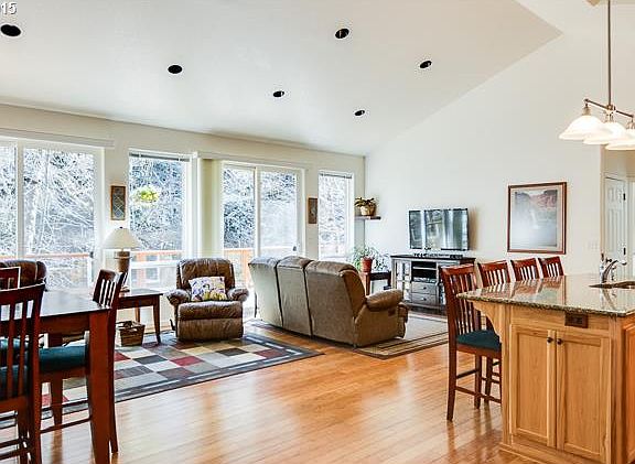 Immaculate 2 bedroom/2bath custom home boasts 800ft of rushing Gate Creek frontage on 1.78 acres. Oversized windows throughout fill this bright home with light and magnificent views. Enjoy sitting by the gas fireplace in either the living room or master bedroom! Vaulted ceilings and skylight create an open feeling and glass sliding doors in both the great room and master lead out onto the home's wraparound wood deck.