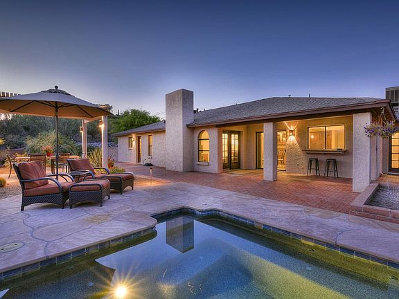 Beautiful home on private .75 acre lot nestled in quiet Heatherwood Hills in the Catalina Foothills. 5 bedroom-3.5 bath-2655 sq ft home, Split bedroom plan w/separate guest quarters or dual master bedrooms or make the 2nd master a rec room or art studio. Upgraded kitchen w/granite counter tops-newer appliances-double oven/microwave/fridge-pendent lights-newer Trane A/C-tile floors in main living areas w/engineered wood in both master suites. Back yard features a conventional 'SPOOL' (small pool/spa combo) for year round enjoyment, lovely covered patio-desert/mountain/city views- perfect for entertaining & bird watching. You will love this location-close to everything; Whole Foods, Bashas, Safeway, restaurants, shopping, hiking and even open enrollment into District 16 schools.