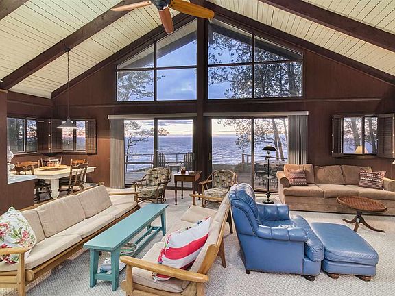 CLASSIC LAKE MICHIGAN COTTAGE! Step into this charming cottage and you'll feel right at home. Two bedrooms on the main floor, plus a large open loft area with plenty of room for all the kids. The living room features extra high vaulted ceilings with a floor to ceiling brick wood burning fireplace! The open floor plan has tons of windows that allows for breathtaking views of the water from the kitchen, dining, great room and loft. The lower level walkout has a second bathroom and ample unfinished space for storage or to finish into additional living area. This home is located in the Lakeland Association, a thoughtfully planned community with all sorts of amenities: a community beach with clubhouse, storage area, basketball, tennis and pickleball courts. Lakeland also has over 140 acres.