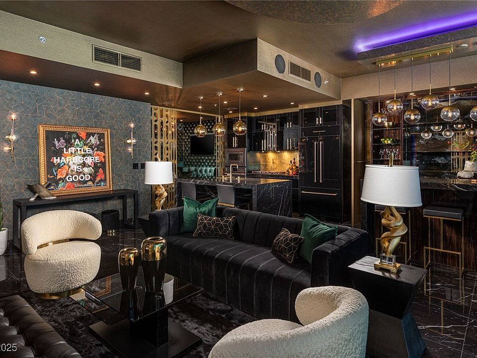 One-of-a-kind custom residence at Panorama Towers is equipped with all the luxuries one could ask for. Interiors completed by top world-class interior designer firm. This home gives five-star hotel quality vibes the moment you step inside. Breathtaking 180 degree Las Vegas Strip views from balcony. Nothing in this unit was left untouched. Top-of-the-line custom features include new sought-after stone flooring, counters and backsplashes, smart home automation, two drop-down screens with projectors, custom cabinets and closet systems, new plumbing and lighting fixtures, window and wall treatments, distributed audio and more. Includes 2 parking spaces and 1 storage space. Living in Panorama Towers, you’re ideally situated, just 1.5 miles from T-Mobile Arena and Allegiant Stadium and walking distance to the world famous Strip. Residents enjoy the best building features including a guard-gated entrance, fitness center, recreational room, resort-style pool and 24 hour limo service.
