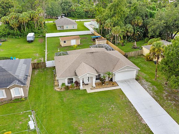 Beautifully maintained 4 Bedroom 2 Bath home on one of the largest lots in the highly desirable Port St. John community. You can search high and low but you will not find a home like this with a huge lot that has everything like this one. Spacious, split floor plan, with huge kitchen and large island breakfast counter, large living area and family room, nice master bedroom with huge walk-in closet, Master bath with shower, large tub, and double sinks. Roof is 14 years old and in great shape,AC is only 2 yrs old. and the water heater is under 1 year old. Also, a formal Dining are and tile and hard wood flooring throughout and that's just the inside! Outside you have a fully fenced .40 acre lot with a huge wood shed that has 110V & 220V Pwr. a convenient garden shed, A lanai that is completely screened in and runs the length of the back of the home, Great for entertaining. Come see this home today!! it will not be on the market long!