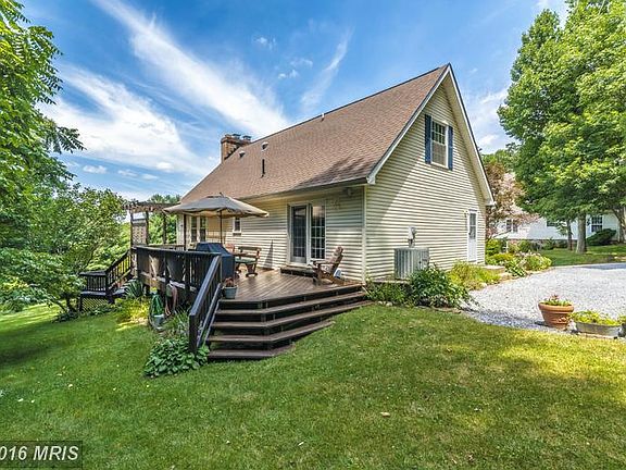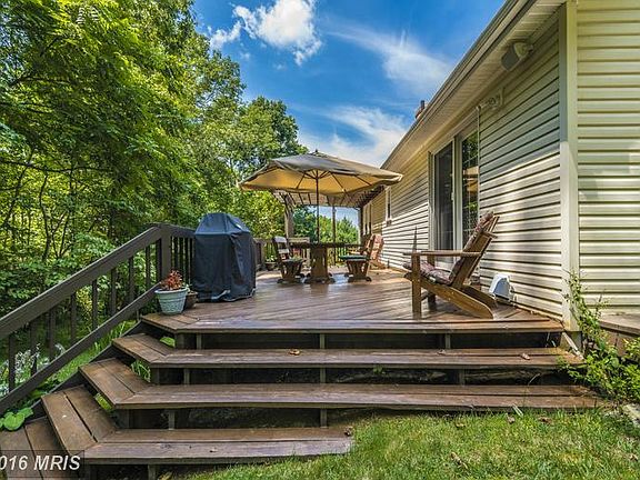Contingent contract fell through! Adorable home located in a beautiful private setting w/tree lined backyard & wildlife all around. Hw floors, main level bdrm, large eat in kitchen, very unique upper level with master bedroom & family room w/wood burning brick fireplace & cathedral ceilings, fully finished bsmt w/bdrm & full bath, large deck & so much more! Subject to release.