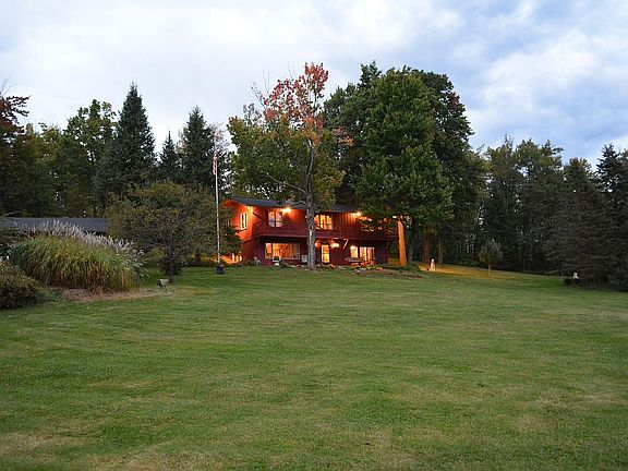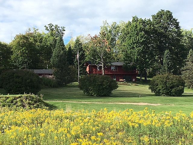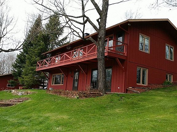 Attractive and well taken care of four bedroom and two bath home overlooking a fairway of the scenic Pinewood Country Club Golf Course. The main entry is the exposed basement living area. It is nicely landscaped with a stone retaining wall in the slope behind the garage and other stone retaining walls, lawn , flower terraces, planted ornaments, birdbath fountain, and a lighted concrete sidewalk from the 24x30 detached garage. There is a double fieldstone fireplace between the living room and the formal dining room. Hot tub on upper level, 6x44 deck along front of upper level. Large patio at main entrance 7x19 lean-to shed and 10x20 carport / boat shed on the back of garage. Home has a Frazier kitchen and most of the home is knotty pine with wainscoting. A very comfortable home and awesome views.