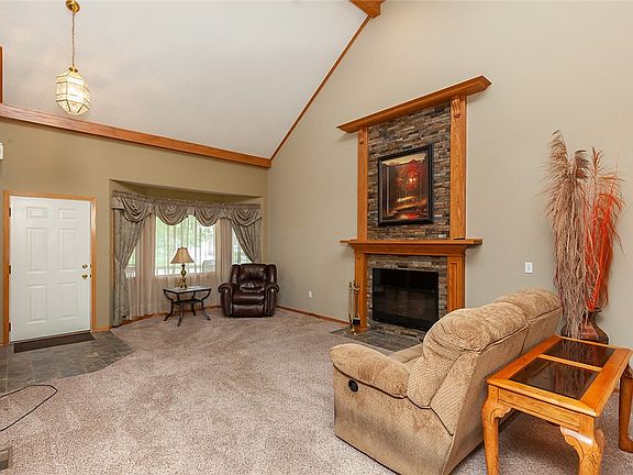 Meticulously maintained 4 bed, 3 bath, 3 car garage on cul de sac. Huge vaulted living room with wood beams on the ceilings, massive fireplace with amazing woodwork and stone work. Large kitchen with a pass through to the dining area which is bright and open by the sliding doors to the back deck and wonderful patio. Main floor master with large closet and master bath. 1/2 bath finishes off the main level. Upstairs you will find 2 large bedrooms with gigantic closets and another bathroom. The finished basement gives you ample room for entertaining. Family room with gorgeous built ins, office, 4th bedroom and laundry/storage room complete this space. 3 car heated garage leaves nothing to be desired. This home is located on a quiet cul de sac and has a private back yard which is fenced. The patio space is amazing and great for parties.