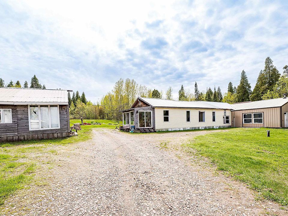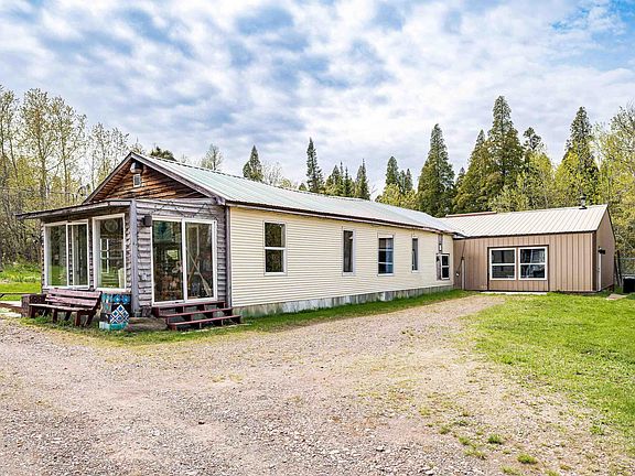 Are you looking for country and rustic? This place is for you! Step into the front porch with all the sunlight pouring in and enjoy the peace and tranquility as you sip your lemonade. Walk in the spacious front entryway, there is a bedroom on the right and a bathroom on the left with a clawfoot tub and laundry area also. The well decorated farmhouse style kitchen is open to the living room and dining room areas, all one big room so you can cook and enjoy your company too! Back in the hallway, turn left to the 2nd bathroom or right to the bedroom, large hallway (presently a pottery room) large work area or great room and another bedroom. So much potential here, the possibilities are endless. The cabin has a heated area in the front, presently used for storage, another small cabin can be seen by following the trail in the back yard to the right. Close to the Superior Hiking Trail, the Beaver River, Beaver Bay, Silver Bay, Black Beach, Tettegouche, Split Rock and Gooseberry State Parks are all just minutes away. Many of the furnishings will stay with the home. All measurements are approximate.