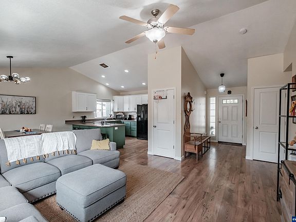 Discover this inviting 3-bed, two-bath home, boasting a spacious open floor plan w/ vaulted ceilings that create an airy ambiance. Delight in laminate wood floors that carry you to the updated kitchen, equipped with stylish two-tone cabinets and stainless steel appliances. The lg, covered patio & fully fenced backyard provide extensive space for entertaining and relaxation. Additional perks include an attached two-car garage and room for RV parking, crafted for convenience and comfort.
