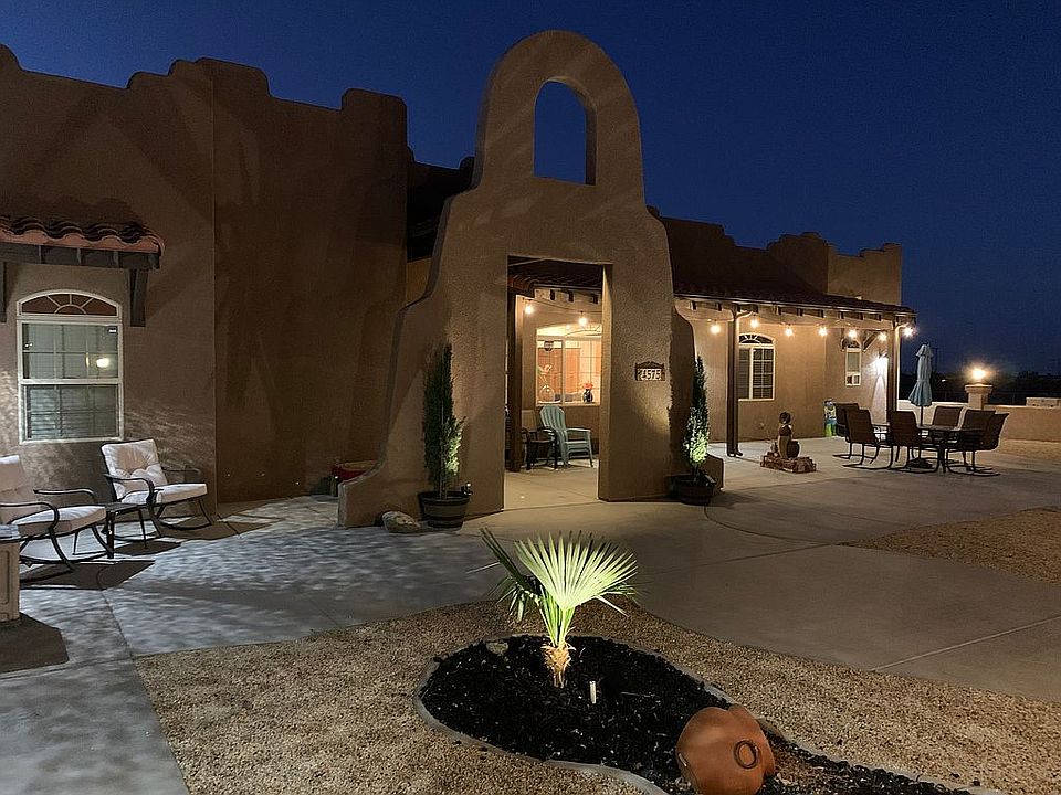 Single story Southwestern Santa Fe Home with large attached garages, huge bonus room and more. Enjoy wonderful night time views from the front courtyard!