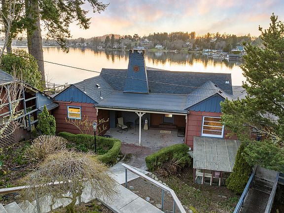 An exceptional and rare opportunity to own a stunning lakefront home on 1.07 acres of lush land situated on East Devils Lake in Lincoln County, Oregon which provides endless sunsets and ample room to spread out. This private 2-story home offers main floor living, 4-bedrooms, 3-bathrooms, and 3335 sq ft. of open living spaces. Boasting front-row seats of unobstructed lake frontage, wildlife, kayakers, and your very own serene sanctuary. The entry sets the stage as you are greeted with sweeping water views out a multitude of windows, open concept great room, rich wood floors, cozy gas fireplace, functional updated kitchen, and a convenient slider off the dining room to a private deck for entertaining. But wait, there is more! 2 convenient staircases lead you down to the lower level; one off the kitchen and the other off the primary bedroom where you will find a stylish updated bathroom, charming built-ins, bonus entertainment area, and access to the patio overlooking the beautiful views and setting. This unique and inviting home allows you to spend your summers on the lake with your own private dock and just moments from beach accesses, restaurants, shops, golfing, hiking, and something for everyone. The ramped entry to the front door and ample parking makes this home accessible and convenient for both residents and guests. Here is your opportunity to own a stunning retreat in a breathtaking location.