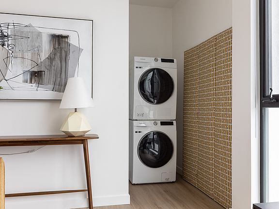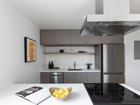 Panoramic viewsHuge communal rooftop deckWhite quartz countertopsStainless steel appliancesLight-drenched modern architectural featuresIncludes dishwasherFrench door refrigerator