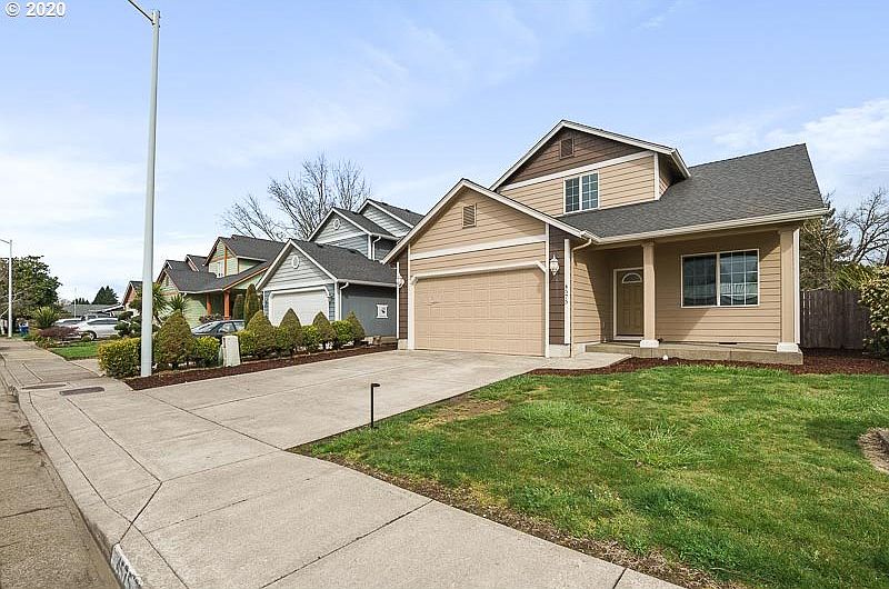 This 5 bedroom, 2.5 bath home has plenty of space to spread out! On the first floor you'll find an open concept living area, 5 bedroom/office, half bath, and gas fireplace. Upstairs has 4 bedrooms including a large light filled master suite that includes vaulted ceilings, double door entry, walk-in closet, master bathroom with dual sinks and large soaking bathtub. Upgrades that include 9 ft ceiling, rich cherry cabinets, stainless steel appliances, and all new carpet, and recent exterior paint.