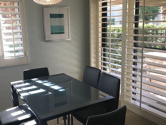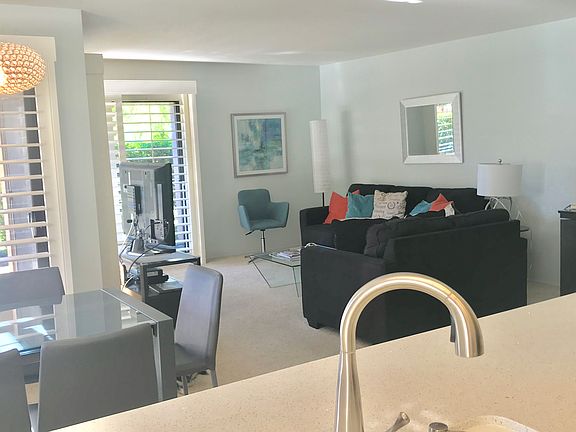 Location Location..Walk to El Paseo! Lovely Resort in Gated community with 4 saltwater pools and spas, 13 tennis courts, pickle ball, adjacent to golf course. This desirable ground floor end unit on the green belt has 2 bedroom, 2 baths, recently updated kitchen with quartz counters and bath counter, new paint, light fixtures, plantation shutters and a “lock off unit” which can be separate from entire unit with its own entrance and patio. Good vacation rental history which is becoming scarce with new laws. Very warm and inviting unit only steps from nearest pool. HOA dues include pools,landscape, exterior , cable tv, water, garbage. Owner is ca licensed realtor.