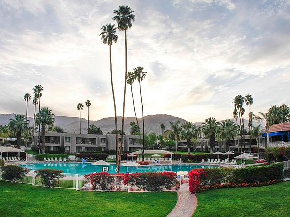 Live in a gated and guarded Resort!! Utilities include UNLIMITED air conditioning in cost! Ground floor unit with beautiful views, patio on greenspace, free close parking, and gorgeous pool and spa steps away. Brand new completely renovated studio with big screen tv and sound bar, gourmet full kitchen with every appliance, full beverage bar, all Carrara marble bath, granite counters throughout, Kohler fixtures, beautiful custom tile and marble floors, rain shower, ceiling fans, cal king bed with deluxe pillow top mattress. Brand new gym, restaurant and bar, several pools and spas, laundry facilities, ice and vending machines, pet areas, all on property. Unit is currently beautifully furnished and includes everything needed; ie, dishware, small appliances, etc. You have the option of having us take anything out you don't want also. Walk to El Paseo shopping and dining. Adjacent to unit, just walk over, is the golf course and putting green with restaurants, bars, outdoor seating, and many fun activities, such as, taco tuesdays, holiday celebrations, etc. Utilities are purchased through us for HOA. Furnished or unfurnished. Photos show view from condo and patio. Utility prices include a resort setting with UNLIMITED air-conditioning, brand new gym, pools and hot tubs, laundries, ice and vending machines, close parking, gated community, security guards, gorgeous landscaping, bar and cafe, green spaces, pet spaces, huge flat-screen smart tv, furnishings, dishes, decor, dining table, bedding, small appliances, etc., with golf, putting, restaurants, bars and activities next door, all within walking distance to El Paseo shopping and restaurants. You will not need to buy anything! Also, any things you do not want we will remove prior to your stay. We are very flexible with leases, length of stays, and price options, just ask :D Offered furnished or unfurnished. Utilities etc are purchased through us for the HOA so everything is already set-up and connected. Ask about pets.