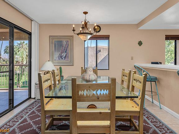 Located in a Shadow Mountain Resort and Tennis Club gated community right around the corner from Shadow Mountain Golf Club, this attractive top story home features a large and very private balcony with terrific views, community pools and elegant furnishings, making it the perfect combination of style, comfort and location. TURNKEY 2 bedroom/ 2 bath furnished condo is a Palm Desert paradise and a perfect getaway. It allows for SHORT TERM RENTALS and is currently booked for a majority days of the season, due to FIVE STAR guest reviews. You'll love relaxing in the open living room watching a good Blu-Ray movie on the flatscreen cable TV after an invigorating shopping on the nearby El Paseo just minutes away or after a morning hike on one of the nearby beautifully magic trails. Use the full kitchen to cook up your favorite gourmet meals, or any of your favorite dishes, and serve it all up on the welcoming elegant dining table or on the outside balcony lanai overlooking the mountains, the greenbelt and the biggest pool in the area. Cool off in community pools after a day on a tennis court, pickleball or the golf course, then use the free WiFi to research your next Desert adventure!