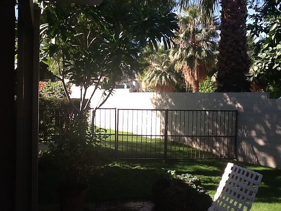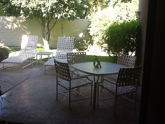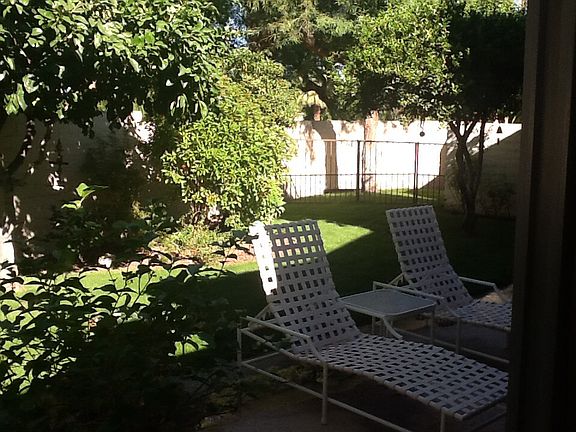 Single level condo located on a landscaped court yard. Upgraded with new paint, new carpets, laminated wood flooring in office/craft room in 2015. both bathrooms have new Birch cabinates, granite counters, new overhead lighting, medicine cabinates, etc. . Comes with a semi-private gated rear yard with a huge patio and three tier fountain. Walk three short blocks and your on the world famous " El Paseo Drive" with fine dining & upscale shopping. HOA ASSOCIATION FEES include exterior building & roof maintenance, landscaping maintenance, building & earthquake insurance, walking night security, window washing ( inside & out), basic & extended tv cable, garbage removal, etc.